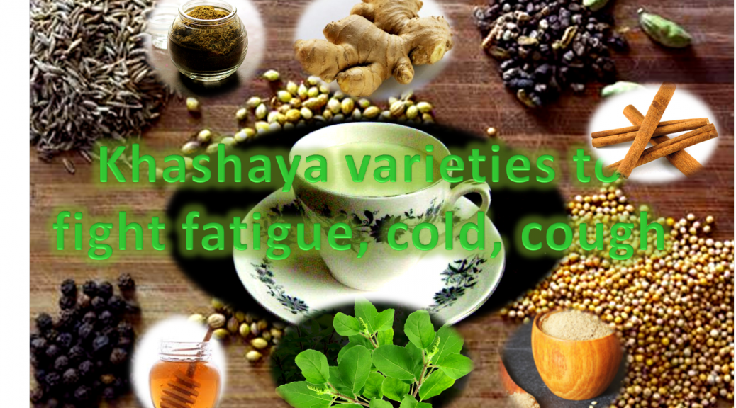 Four types of khashaya are coriander seeds khashaya, ginger-tulsi khashaya, clove-cinnamon khashaya and cardamom khashaya.
