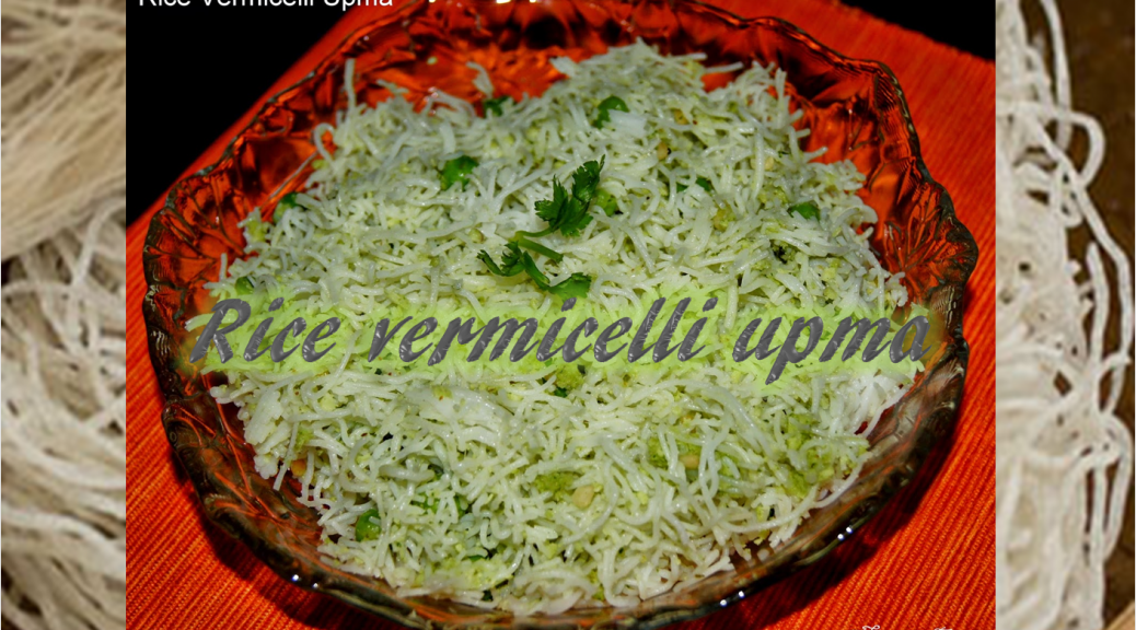 Upma or uppittu is a breakfast item of India. It is prepared in various ways using different ingredients – cracked wheat, suji-rava, rice rava, vermicelli etc. Upma can also be prepared using rice vermicelli and it tastes delicious. This is a good lunch item and kids love to have this because of its yummy taste.