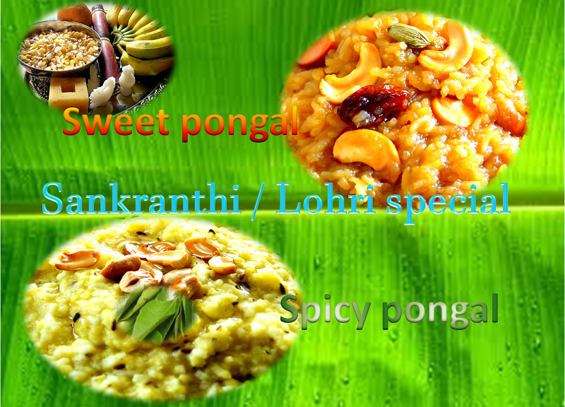The festival of Sankranthi and Lohri are approaching. Both these two festivals marks the harvesting season and change in the path of Sun. Makara Sankranti marks the transition of the sun into the zodiacal sign of Makara (Capricorn) on its celestial path. With this days are going to be longer, more bright and activities will increase. To mark the harvesting season people of India traditionally prepares two dishes made of rice and moong dal. These are spicy (khara) pongal and sweet pongal. Both these are delicious with high carbohydrates and lot of protein.